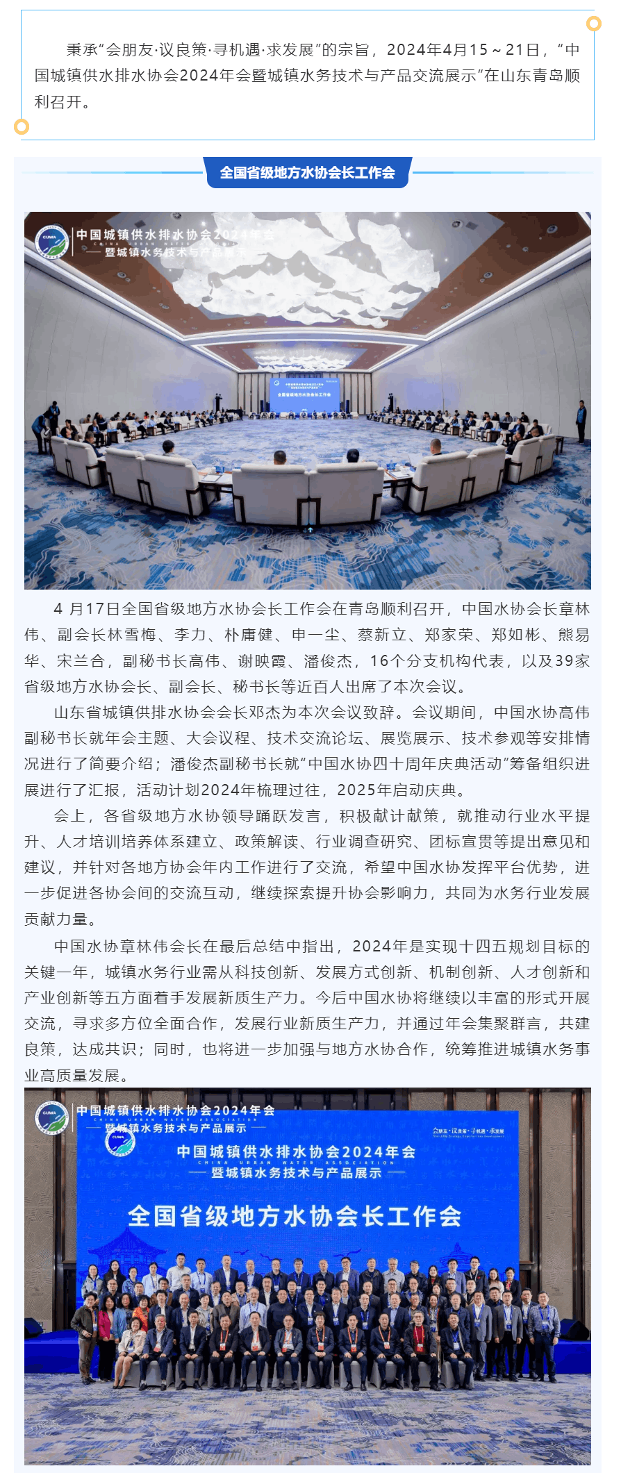 全国省级地方水协会长工作会在青岛顺利召开·中国水协2024年会