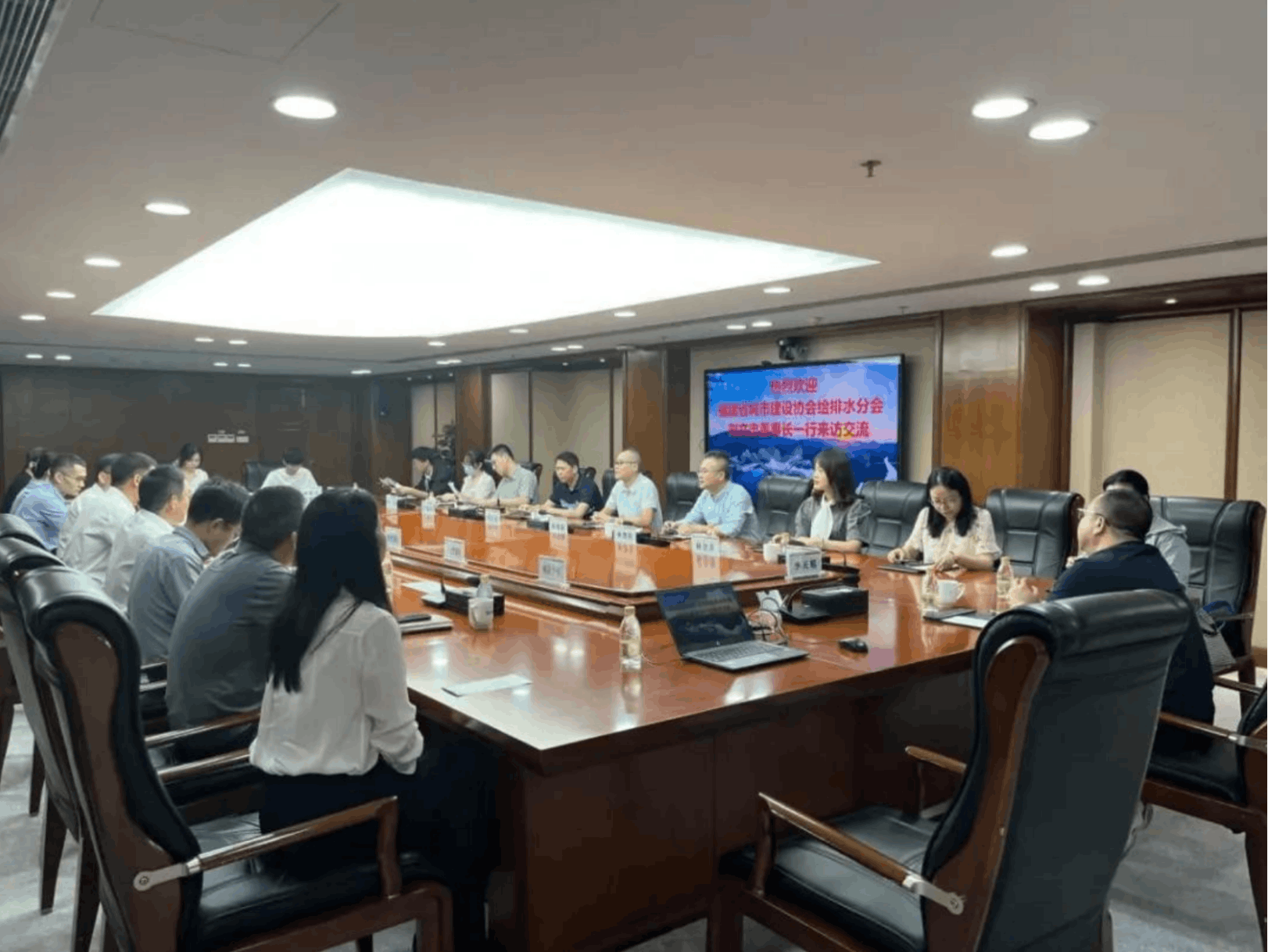 6月5日上午,交流团队前往杭州水务集团有限公司交流学习。集团党委委员、副总经理陈爱朝、浙江省水协秘书长袁潮波对交流团队的到来表示热烈欢迎。交流会上,双方分别就企业管理体系、绩效考核机制、二次供水改造和运维、工程管理、服务提升和数字赋能等方面进行深度交流和探讨。