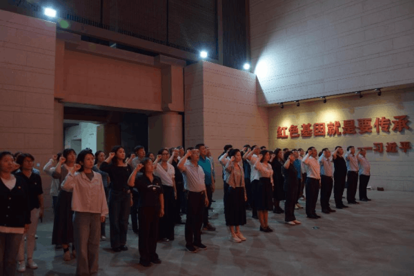 会后,与会代表一同来到铁道游击队纪念馆,开展了主题党日活动。跟随讲解员的介绍,大家参观了抗日烽火燃鲁南、凝聚力量同抗日、初露锋芒显身手、铁道飞虎出奇兵、沙沟受降载史册、红色基因代代传等六个展厅,共同聆听铁道游击队挥戈于百里铁道线,出没于万顷微山湖,运用游击战术与日本侵略者巧妙周旋、浴血奋战的传奇故事。党员们齐唱《弹起我心爱的土琵琶》,致敬在艰苦环境中的坚强革命意志和乐观主义精神的铁道游击队员们。重温入党誓词,用庄严的宣誓表达对党的无限忠诚和对事业开拓创新的坚定信念。