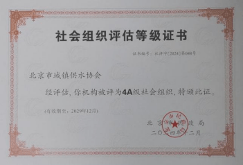 经专家组现场评估、评估结果评审、公示、复核及市民政局确认,北京市城镇供水协会被评为市级4A社会组织。