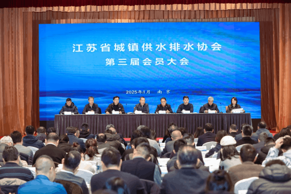 2025年1月17日,江苏省城镇供水排水协会第三届会员大会在南京双门楼宾馆隆重召开。中国城镇供水排水协会会长章林伟,江苏省住房和城乡建设厅党组成员、副厅长陈浩东,江苏省住房和城乡建设厅城市建设处副处长王华成,江苏省住房和城乡建设行业党委四级调研员史艳辉,江苏省城镇供水安全保障中心主任徐建,南京水务集团有限公司总工程师周克梅,南通水务集团有限公司党委书记、董事长吴益平,常州市排水管理处党委书记、处长许光明,无锡市水务集团有限公司党委书记、董事长钱晓明,江苏省城镇供水排水协会第二届理事会监事、河海大学教授陈卫等以及来自全省各地供排水相关领域的会员单位代表共140余人出席会议。江苏省住房和城乡建设厅党组成员、副厅长陈浩东致辞,江苏省城镇供水排水协会第二届理事会副理事长、副秘书长许光明主持会议,中国城镇供水排水协会会长章林伟总结讲话。