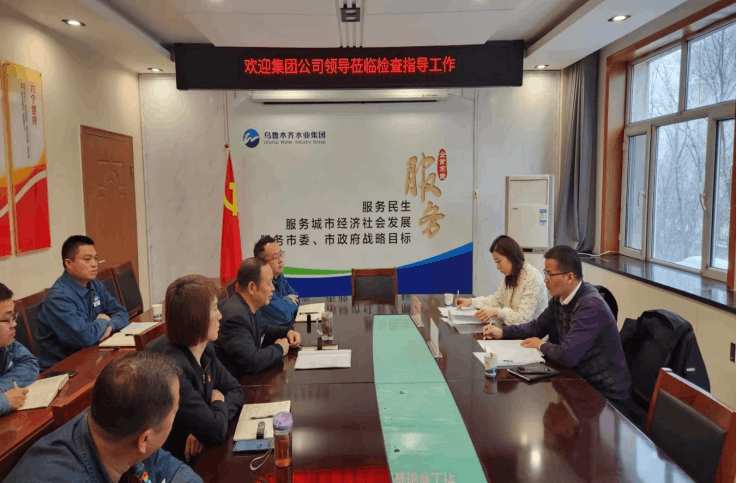 在中心二楼会议室,田家乐就此次调研交流的背景进行了介绍,说明这次调研的目的旨在进一步了解基层基本情况,为下一步推动集团公司整体工作的开展做好支撑。中心党支部书记、经理梁海军分别就米东区供水服务中心、米东区供排水公司从人员、供水范围、基础设施建设等基本情况,生产经营主要四大指标完成情况,中心党建、党风廉政建设工作取得的成绩,安全生产安全防范工作开展落实情况,辖区民生工作,社会责任担当以及中心和米东区供排水公司当前工作中存在的重点难点问题向调研组逐一作了汇报。田家乐对中心、米东区供排水公司各项工作的开展给予了充分肯定,并表示,中心领导班子团结带领全体干部职工在复杂的环境下,克服诸多困难,在保障辖区供排水服务民生方面做了大量工作并取得了显著成绩。希望中心“一班人”在集团党委的领导和支持下,在2024年的新征程中,全力谋改革强发展,为建功新水投作出更大的贡献。