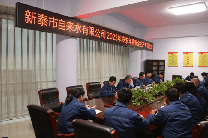 12月29日,新泰市自来水有限公司在公司四楼会议室召开2023年岁末年初安全生产专项会议,公司领导班子及各部门负责人参加会议,会议由公司副经理王伟强主持。