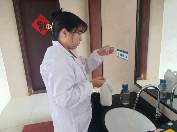 集团水质监测中心工作人员对代表休息场所、会场进行走访对接,取水采样,对水的浊度、细菌总数、余氯含量等各项指标进行检测,确保水质达标。