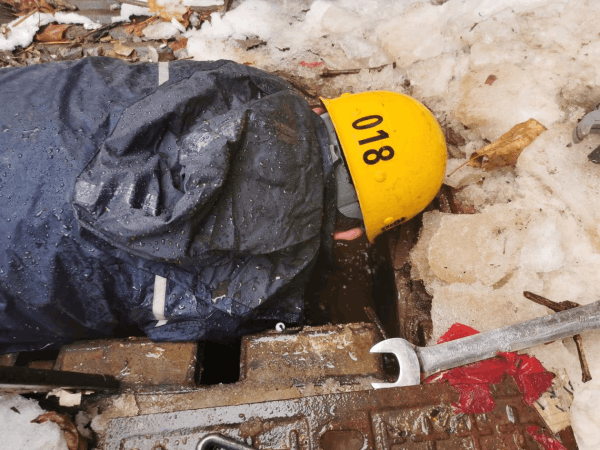 一大早,金水维修班接到热线转单,位于南阳路68号院26号楼一用户反映家中无水。共产党员邵欣接到指令后立即驱车赶赴现场。到达现场,本来以为是个“小活儿”,但没想到却是一次难啃的“硬骨头”。经过检查,发现原来是该用户表井内水表前后阀门损坏造成用户家中无水。如果关闭总阀门又要影响到小区内其他居民用水,经仔细考虑后,邵欣决定带水维修。他戴上安全帽,撸起袖子,拿起管钳和扳手,跳入冰冷的表井中,狭小的井下空间和冰冷的积水考验着抢修工作人员,不一会儿手脚已被冻僵,邵欣忍受着刺骨的寒冷在冰水里摸索维修,仅用20分钟就完成了管件及阀门的更换工作,恢复了居民家中正常用水。