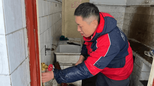 当天上午,营业处中原维修班接到热线转单,位于康复前街47号院1号楼的一位居民反映,该单元漏水严重,水顺着楼梯往下灌,已流到楼下几户居民家中,情况十分紧急,要求协助关阀门。共产党员吉萌威火速赶到现场,发现楼道内清水哗哗的从上往下流,几户居民都在忙碌地清理楼道内被水冲下的杂物,并不停清理流进自家的积水。吉萌威迅速换上胶鞋,带上维修工具顺着水流一层一层往上寻找漏点。最终,发现漏点在该单元7层南户,屋内积水已有10公分,由于房屋空置也联系不到房主,吉萌威决定先进行止水。漏水处为该户立管弯头,必须带水拆除DN25的弯头,才可以安装新管件并加装闸门止水。吉萌威顾不得躲避弯头转动时喷向自己的水花,瞬间已将他全身的工装打湿,管箍、弯头、对丝、闸门一个个配件全部安装完毕,漏水止住了,他的手也冻得通红。“这么冷的天,你们这行真是太辛苦了,如果没人管这户人家,恐怕漏水结冰会造成多人摔倒损失就大了,谢谢你快速维修!”楼下的居民看到漏水这么快就止住了,纷纷表示感谢。“没事儿,这是我们应该做的!”吉萌威一边说,一边收拾维修工具,又开车匆匆赶往下一个抢修现场。