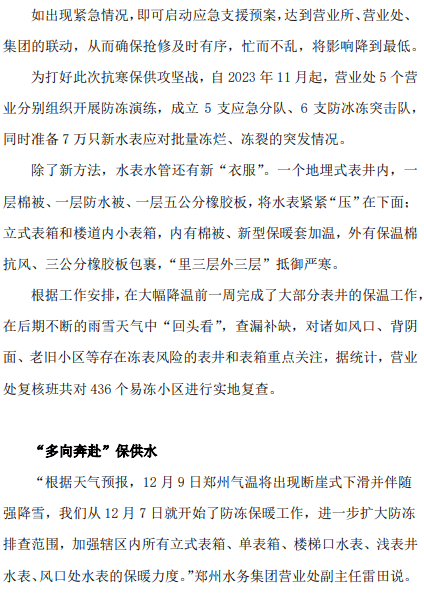 1762787:383 占比仅为0.02% 郑州水务刷新水表水管防冻最低记录