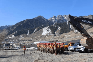 演练现场,8个应急抢险小组各司其职,为保障演练安全,救护组第一时间拉好警戒线,安全员携医疗箱做好救援准备;抢险工作组用防洪袋装填砂石料,堆砌1#排洪渡槽堤顶,防止泥石流进入新干渠;巡护组前往渡槽上游,实时监测泥石流情况;设备维护组启动应急设备,协助抢险机械对渡槽内堆积泥石流进行疏通;大家通力合作,演练现场秩序有条不紊,顺利完成本次演练。