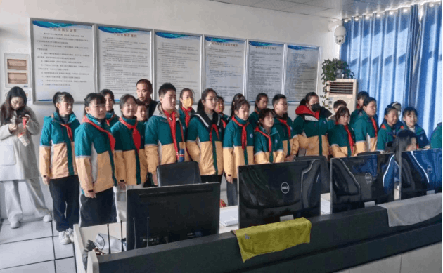 在中控室水厂技术人员对前来参观的小学生详细讲解了自来水的生产过程和水处理工艺流程就是:通过取水泵房和约25公里的原水管道将黄栗树水库的水输送至二水厂,然后经过混凝、沉淀、过滤、消毒、化验等一系列复杂流程处理后,使经过处理自来水水质完全符合国家生活饮用水标准后,再经过送水泵房加压后,洁净、清澈、卫生的水沿着城市的供水管道,流入千家万户。