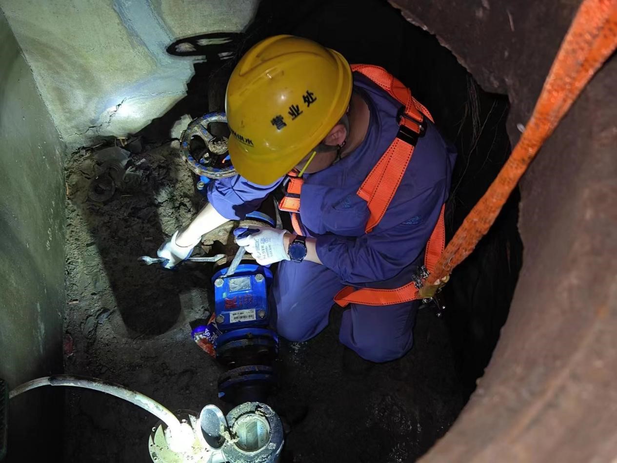 为节省维修时间,所里协调迅速送来新配件,贾维胜和刘智昂经过三个多小时轮流下井拆卸,终于更换好新的单流阀,并在晚上8点14分恢复了供水,保障了用户过节期间的用水。
