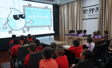 在思源水务一楼会议室大泉乡中心幼儿园西泉分园和博尔通古乡中心幼儿园的小朋友们通过观看节水动画片,进一步感知节约用水的重要性,让小朋友们懂得要从小事做起、从自己做起,珍惜水、爱惜水、节约水。