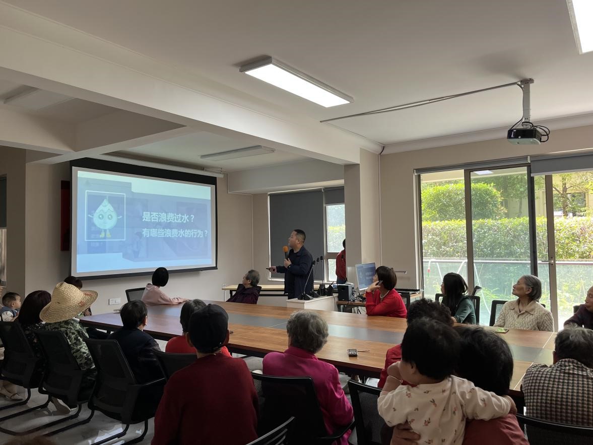 同时,金华市还开展了“社区书记谈节水”专项行动,在中济社区会议室,社区书记吴翔给居民们上了一堂生动的城市居民节水科普课,书记以一个个浪费水的行为为例子,引发了居民朋友们的热烈讨论,充分发挥了社区在家庭、单位等整个社会网络中的纽带作用,推动节水意识真正走进千家万户。