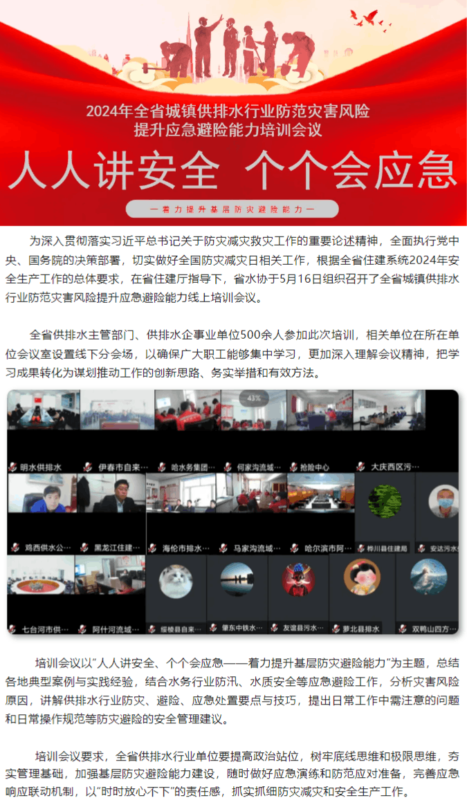 【防灾减灾宣传周】全省城镇供排水行业防范灾害风险提升应急避险能力线上培训会议召开