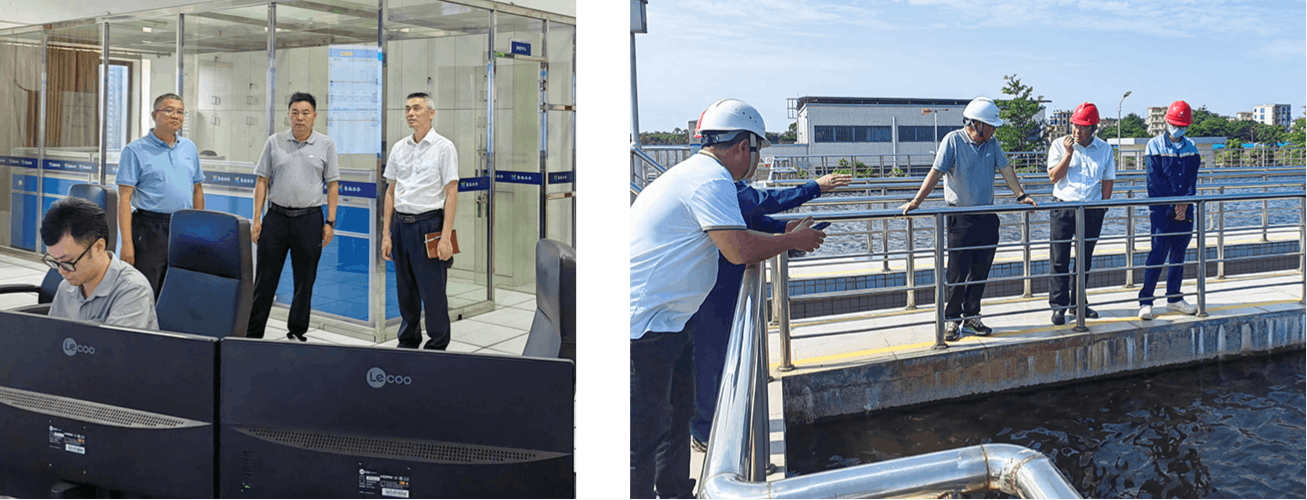 座谈会结束后,一行人实地参观了湛江粤海水务调度中心、麻章水厂,并在智慧水务建设、管网漏损控制、水厂预处理系统、消毒系统、制水工艺等方面进行了探讨交流。