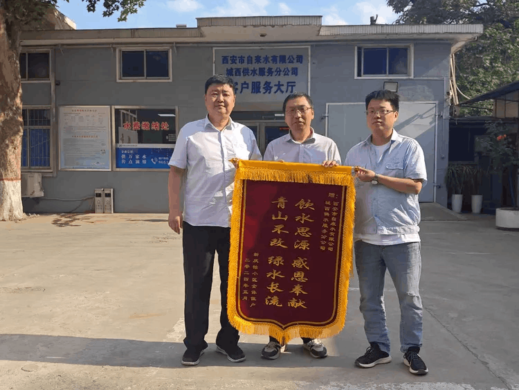 一面锦旗,是新庆怡小区全体业主对自来水公司高效服务的肯定。西安水务集团始终聚焦发展所需、百姓所盼,把人民群众对优质供水和高品质服务的需求作为努力奋斗的目标,让供水品质更加可靠,服务品牌更加响亮,优质供水惠及更多用户。