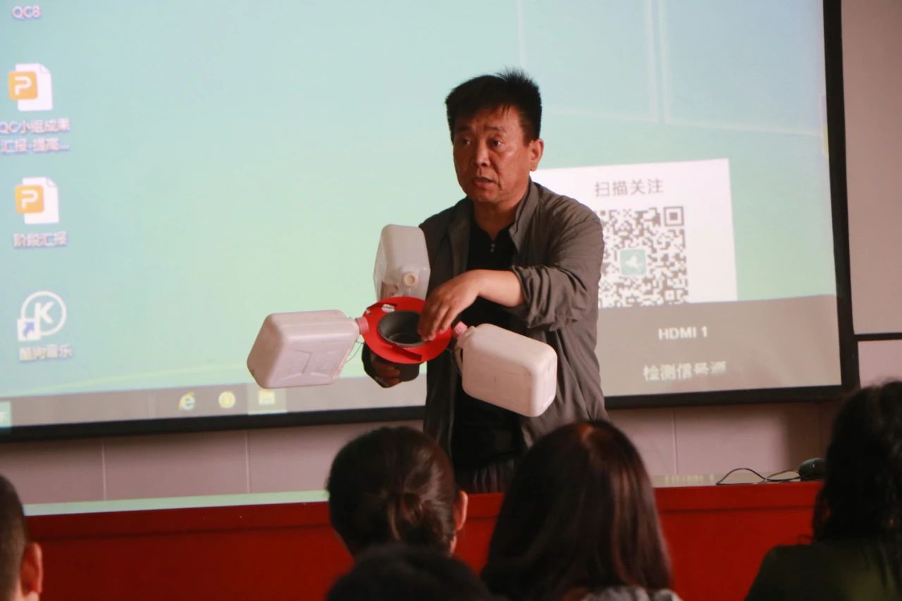 污水处理运行部带来两个QC项目,其中三期QC小组的研究课题同样关系着离心机轴承寿命。“离心机轴承座注油装置一旦出现注油不充分,将给高速旋转的轴承带来过热。”科长赵涛在汇报时介绍了他们通过日常观察发现的现有注油装置的缺陷,并分享了他们摸索出的改进方法。