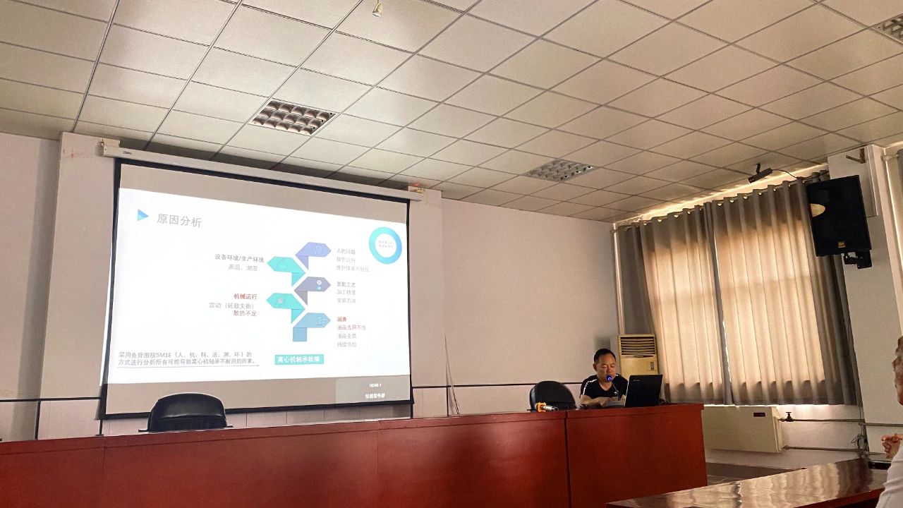 动力设备部QC小组的研究课题是通过提高离心机轴承耐用性,降低使用和维修成本。科长贺超介绍了他们用排除法寻找影响轴承寿命的因素,经过多次现场观察及数据分析,他们找到了问题根源,决定从增加轴承座散热和改善油品上寻求突破。目前他们正在密切观察改进的效果。