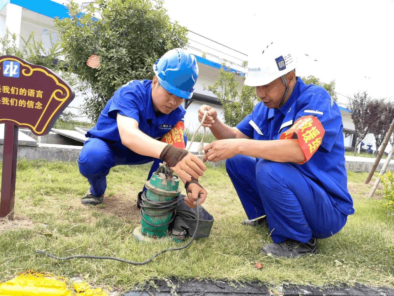 天一供水厂演练模拟连续多日降雨,上游水库开始进行泄洪,洪水通过电缆沟倒灌进入送水泵房,导致无法正常供水。应急抢险队伍立即携带防汛救援器材,赶赴现场救援排险。设置安全区域、沙袋封堵电缆沟、对送水泵房进行抽排水,演练过程分工明确,反应迅速,流程规范,检验了预案,锻炼了队伍,提升了应急处置能力。
