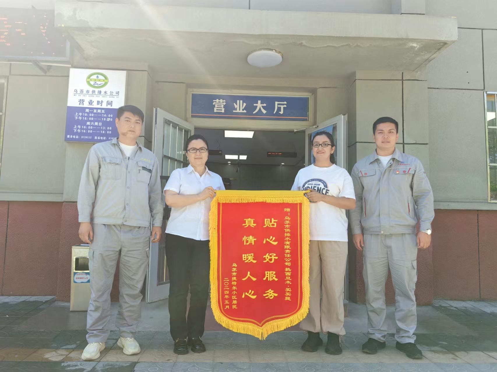 近日,一名办事群众将一面写有“真情暖人心 贴心好服务”的锦旗送到了乌苏市供排水有限责任公司客服中心业务员热西旦木·买买提手中,对她热情周到耐心的服务表示衷心感谢。