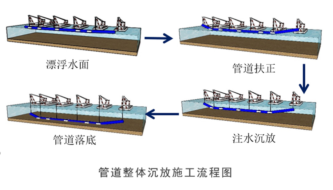 管道是水资源、油气能源、电力通信输送的重要途径。在百米级管道浅水区铺设施工中,虽然整体式沉管采用的管道拼接浮运一次性沉放方法相较传统围堰法、顶管法、近海拖管法、远海铺管法等,有着航道影响小、工期短、造价低的优点,但在跨度超千米的跨海管道施工中,存在施工参数难确定、基槽设计不合理、沉管工法落后等三大卡脖子难题。