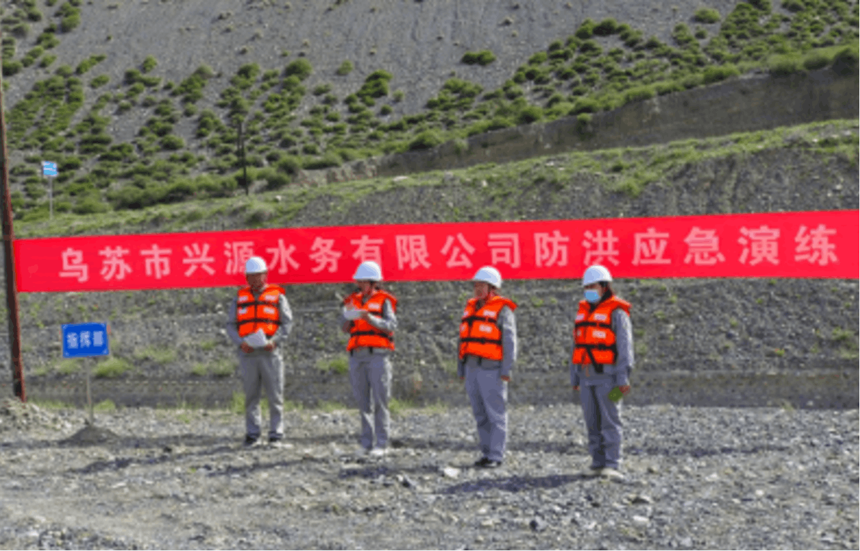 为全面落实企业安全生产责任,进一步增强全体职工的防洪意识,切实提高雨季防洪应急处置能力,锤炼应急抢险队伍,使职工能够迅速、高效、有序地做好防洪防汛和抢险应急救灾工作。近日,新疆乌苏市兴源水务有限公司组织全体职工前往乌苏市四棵树河新渠首进行防洪应急演练,乌苏市水利局领导进行现场指导观摩。