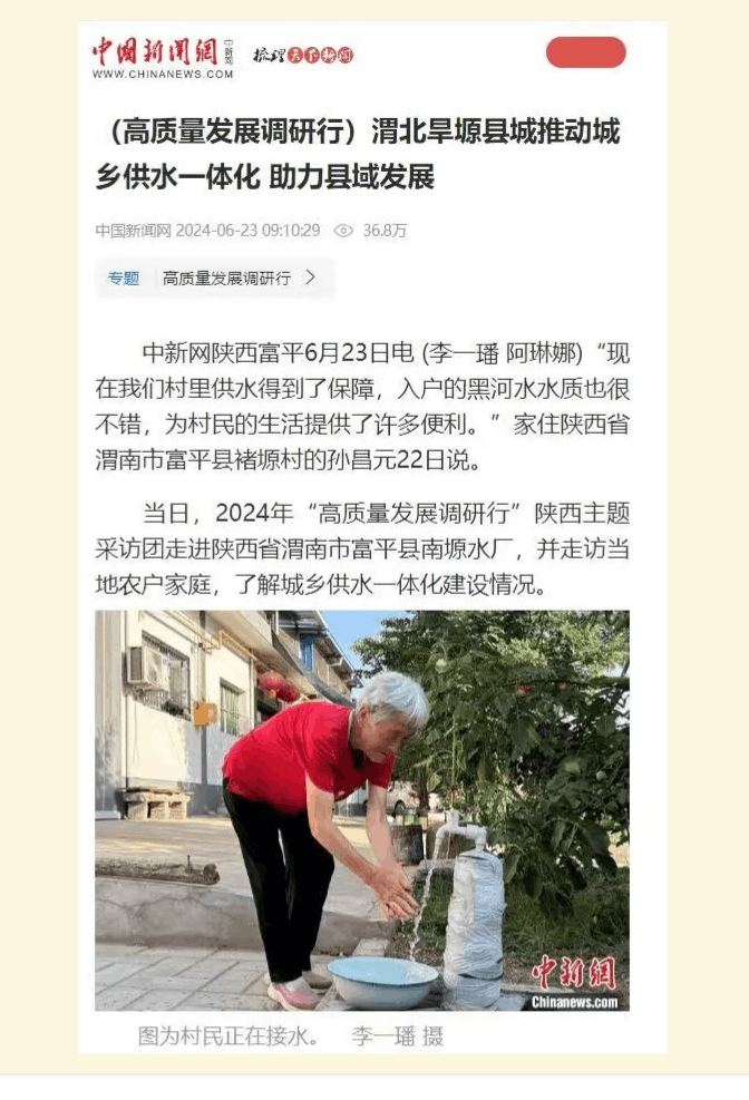 据介绍,富平县先后建成县城南塬北塬2座水厂,农村跨镇联村集中供水工程13处,2022年5月黑河水成功入富,全县城乡供水能力达到每日13万吨,基本形成了“城乡供水一体化”管理格局。