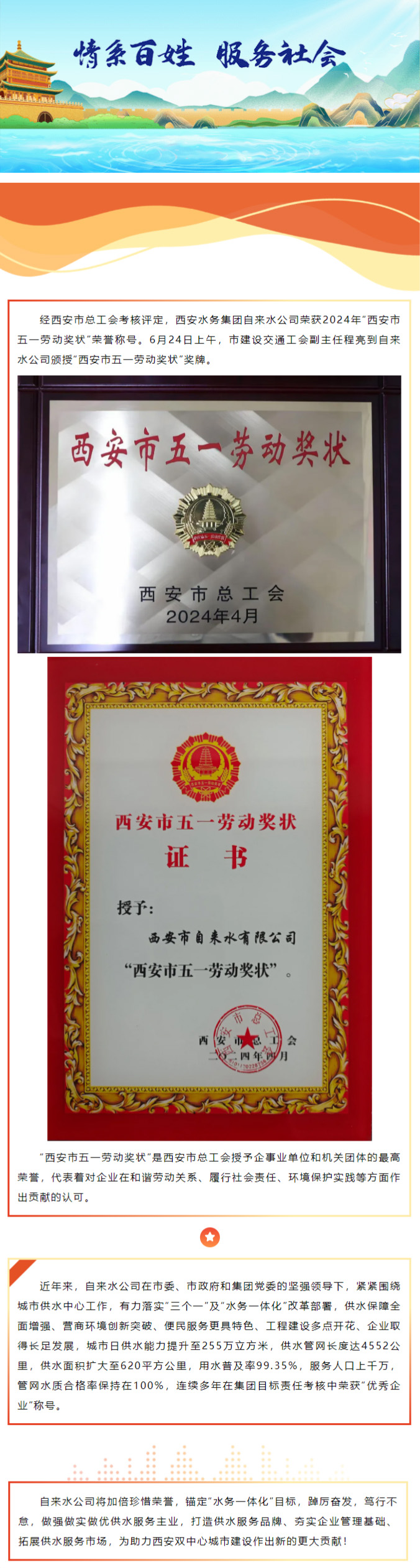 喜报!自来水公司荣获“西安市五一劳动奖状”荣誉
