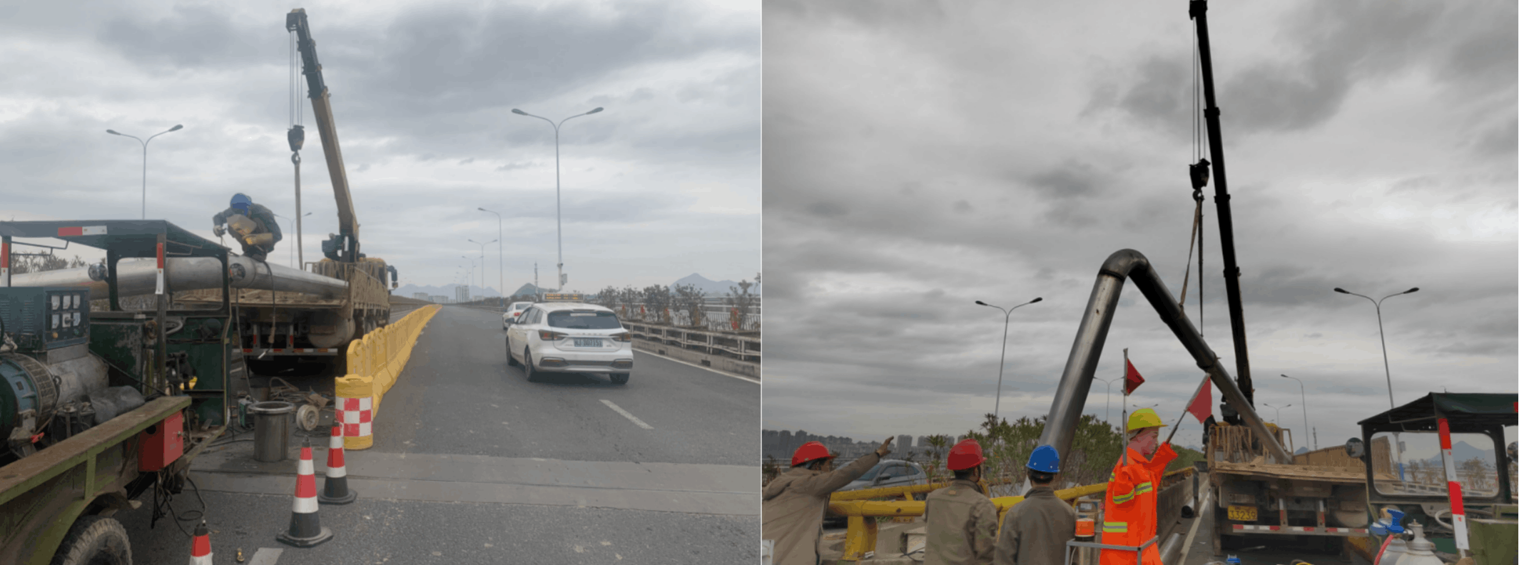 宁德金马大桥处于海域交汇处,综合地理位置、天气影响、管道路由等因素,宁德水务公司首次采用双面衬不锈复合钢管设计,项目总投资330万元,主要建设内容:金马大桥主桥面明装316L双面衬不锈钢管,长度为1082 米;人行道埋地 De315 PE管,长度为252米;挡墙混凝土满包敷设采用 De315 PE管,长度为30米。宁德水务公司在交警、园林、道路建设等单位的支持下,现场对接踏勘,明确主桥挂桥安装注意事项,经过7个月不懈努力,顺利实现通水任务,最大程度保障宁德南、北岸环东湖片区安全稳定供水。