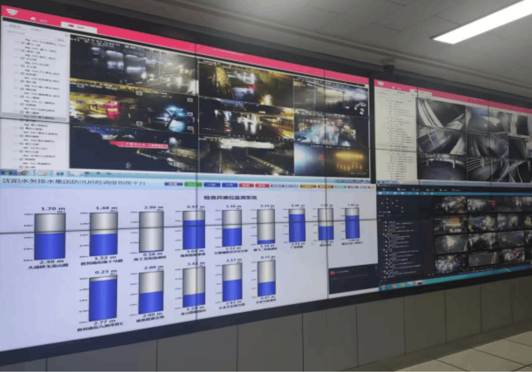 防汛期间,沈阳水务排水集团领导班子成员始终坚守在工作岗位上,全面统筹各单位的防汛工作。在沈阳水务排水集团防汛调度指挥中心,工作人员通过信息平台,密切关注雨情信息,并根据降雨情况,对降雨较大区域的各泵站抽升进行调控。同时,根据检查井液位监测系统回传的实时数据,及时向各布控单位进行通报,为各单位做好应急处置,提供了详实、准确的依据。