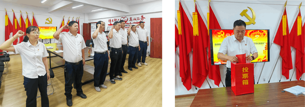活动首先在支部书记曹永奇同志的带领下,全体党员笔直肃立、面向誓词、举起右拳、庄严宣誓,在党旗与誓词下重忆入党初心,牢记使命担当,永葆政治本色。