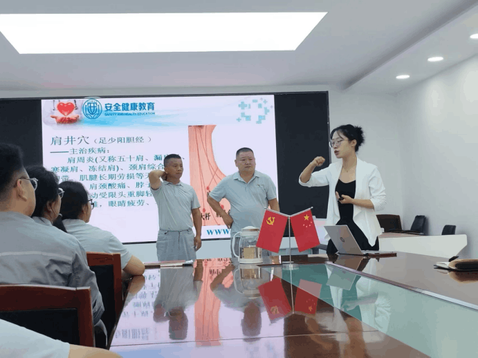 讲座现场,安全健康教育网伊犁站宣教科马越老师结合丰富的案例,深入浅出地为员工们讲解了健康生活的重要性。从急救、心肺复苏、保健穴位、日常饮食的合理搭配到适度运动的益处,从心理健康的维护到职业病的预防,内容涵盖了多个方面。