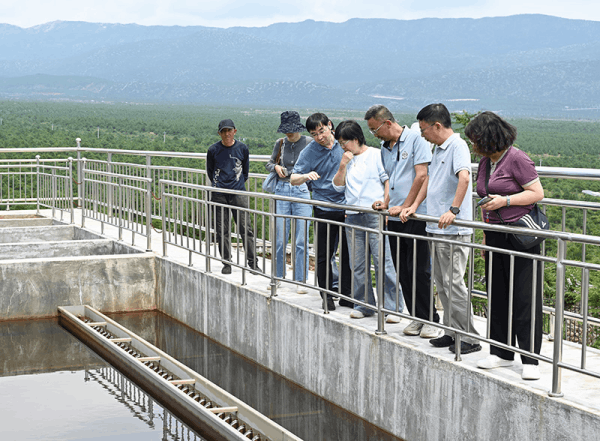 在丽江市四水厂,调研组详细了解了水源水质、水厂工艺、加药和消毒情况,对絮凝斜管沉淀池的排泥操作做了现场指导。