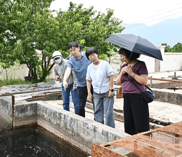 在丽江市玉龙县三束河村,调研组与村里的水管员详细了解使用情况,该村日供水100立方米,供水户数60多户,供水人口200-300人。了解到该村无净化装置,水源从市水务集团三束河取水口通过管道引至村子取用的情况后,调研组调研了三束河取水口,详细了解了城市供水和玉龙县白沙涉及近十个村社的农村饮用水水质、取水和净化设备等情况。