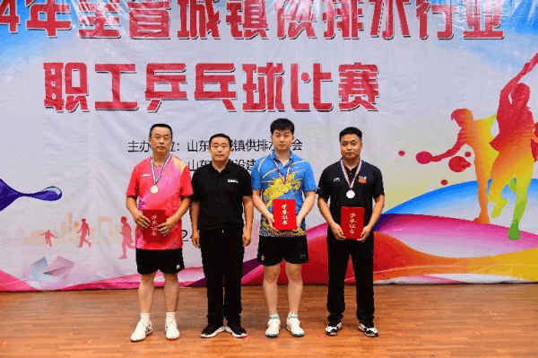 经过两天激烈角逐,济南城投排水集团有限公司王笑朕、菏泽水务集团自来水有限公司林立波、山东公用控股有限公司张保卫分别获得男子单打冠军、亚军、季军。