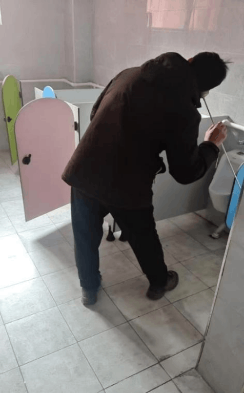 周日上午,张队长带领队员们到幼儿园后,根据管网走向随即展开拉网式排查,最后将漏点锁定在了卫生间,发现有16个马桶漏水,纠其原因,是水箱内的浮球位置调整的过于靠上,导致上水孔关闭不严造成漏水。找到原因后,及时止损,帮助他们把所有马桶的浮球调整到正确位置,漏点止住,水表指针不再转动。同时张队长又把打印出来的园内管网图送给园长,交待其保管好,便于后期管网维护。