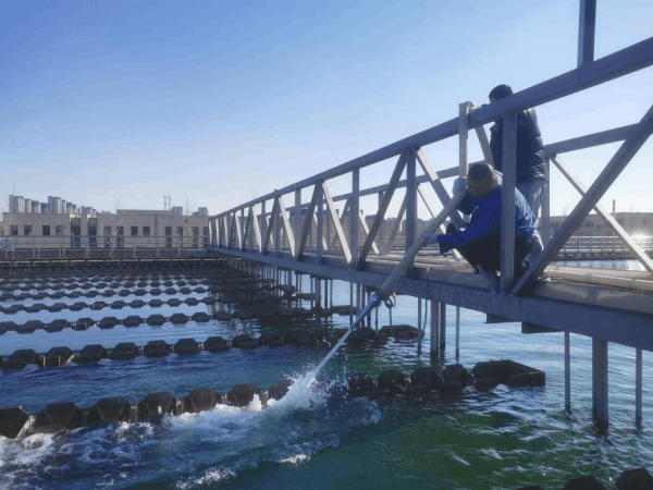 2月4日早上9点,郑州水务集团港区水务沉淀池,运行一班班长白石杰和班组成员们已开工。