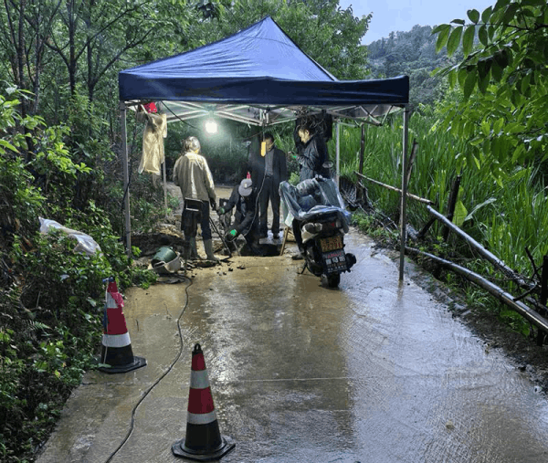 公司迅速启动应急预案,在做好供水调度同时,组织抢修队、工程车辆及应急物资赶赴现场。尽管暴雨导致道路泥泞、作业施工难度大、坑积水严重,抢修人员仍穿戴防护装备,采用抽水泵排水、临时支护等措施,在确保安全的前提下展开作业。