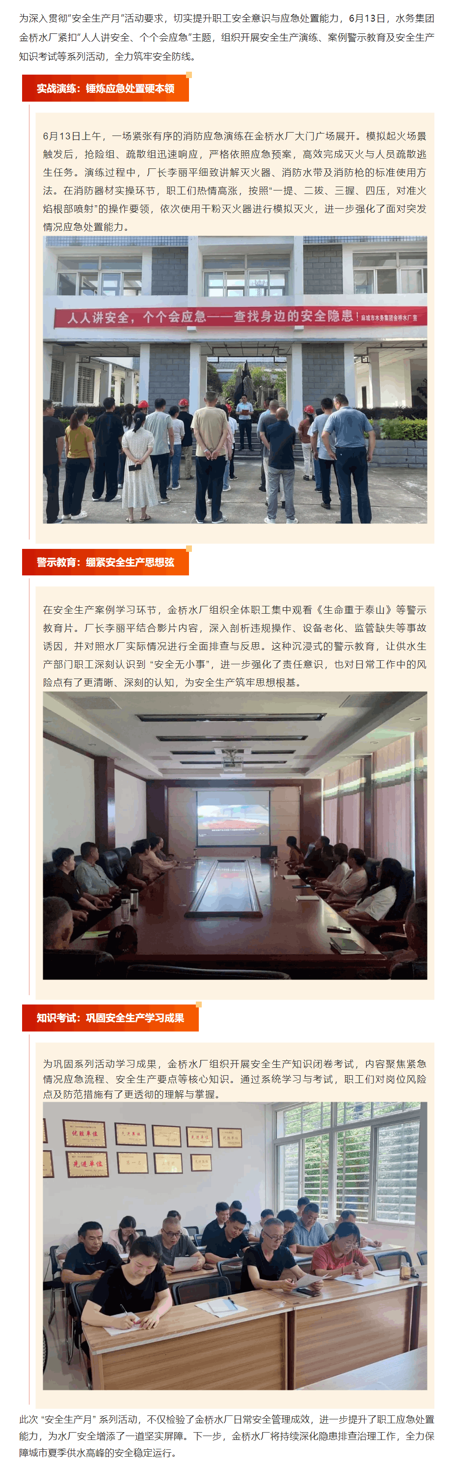 水务集团金桥水厂扎实开展“安全生产月”系列活动