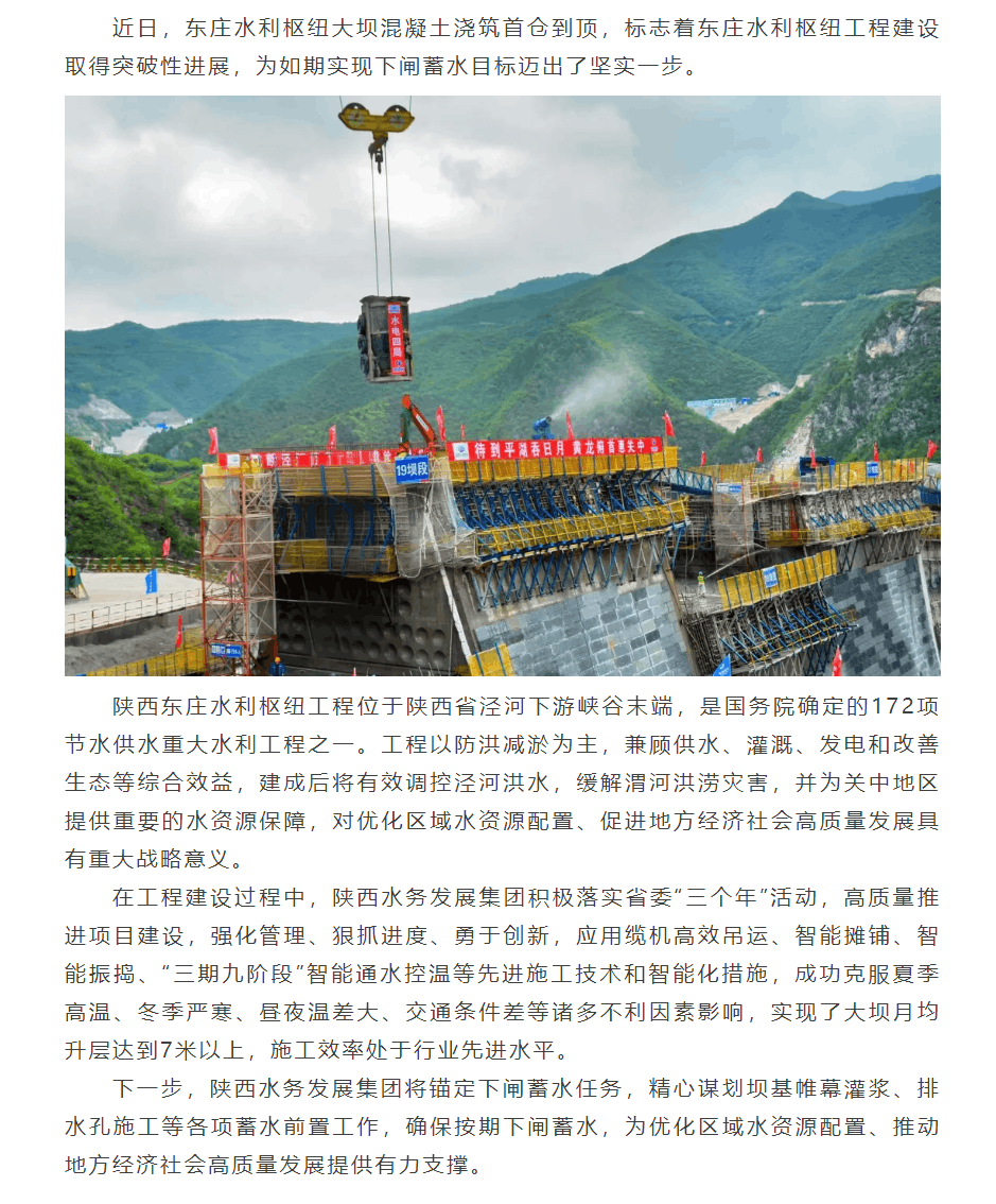 东庄水利枢纽大坝混凝土浇筑首仓到顶.png