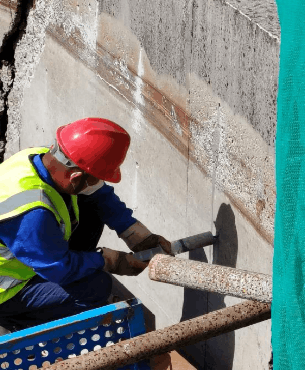 温柔的“破拆专家”:在对导流墙的拆除作业中,摒弃了传统爆破方式,转而采用静力破碎技术。相较于传统爆破“震天动地”的作业方式,这种“无声破拆”通过将特制的静力破碎剂注入混凝土的裂缝中,利用药剂固化膨胀产生的压力,使结构物缓慢、安全地破碎。施工过程中,无震动、无飞石、低噪音的特点,不仅降低了对周边环境的影响,还极大降低了安全风险,真正实现安全与环保双赢。