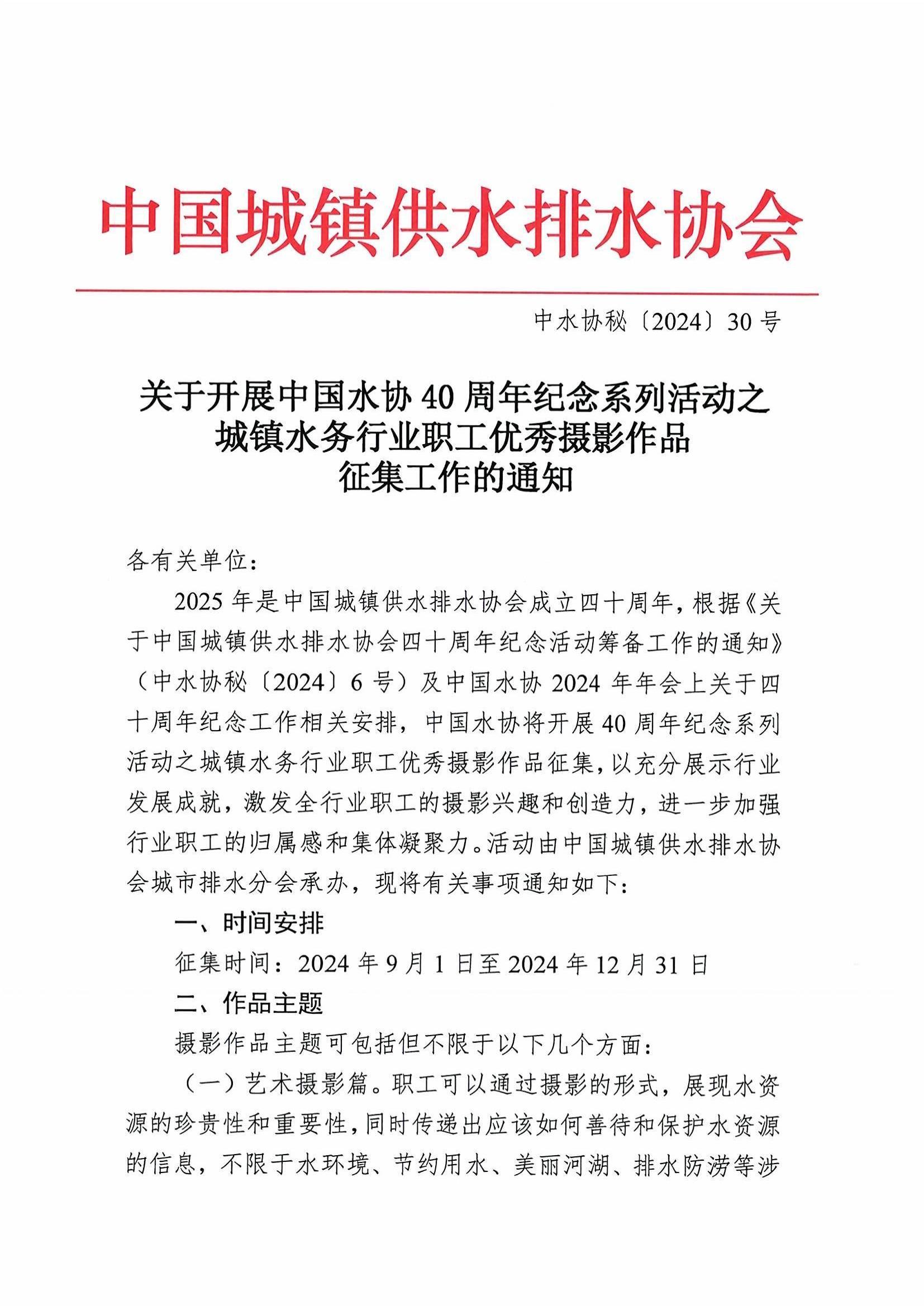关于协会 协会简介 协会章程 协会历史 协会制度 协会负责人 会长 副会长 秘书长 组织机构 组织架构 理事会 监事会 秘书处 分支机构 地方水协 专家智库 战略咨询委员会 顾问委员会 专家团队 标准化工作委员会 信息公开 政策规范 法律法规 行政法规 政策文件 政策解读 国家标准 国家标准动态 现行国标 行业标准 行业标准动态 现行行标 国际标准 通知公告 业务活动 水协年会 2022/2023年会 2021年会 团体标准 简要介绍 机构制度 团标申请 现行团标 团标动态 工程案例 简要介绍 管理办法 入库申请 已入库名录 教育培训 简要介绍 管理办法 培训计划 培训基地 培训动态 科学技术奖 简要介绍 管理办法 往年获奖名单 科技成果评价 简要介绍 管理办法 申请鉴定材料 往年鉴定成果 产品推荐 简要介绍 管理办法 在线申报 产品名录 统计年鉴 新闻动态 水协要闻 行业要闻 地方水协动态 综合新闻 业务交流 行业热点 国际交流 会员中心 管理办法 会员名录 副会长单位 常务理事单位 理事单位 会员单位 会员风采 理事会动态 会员登录中国城镇供水排水协会(简称“中国水协”)是全国性、行业性、非营利性的社会组织。成立于1985年,登记管理机关为民政部,党建领导机关为中央和国家机关工作委员会,业务主管部门为住房和城乡建设部。 中国水协的最高权力机构是会员代表大会,理事会是会员代表大会的执行机构,会员代表大会每5年召开一次。在会员代表大会闭会期间领导本协会开展日常工作。理事会设会长、副会长、秘书长。 中国水协现下设十六个分支机构:城市供水分会、城市排水分会、乡镇水务分会、建筑给水排水分会、科学技术委...